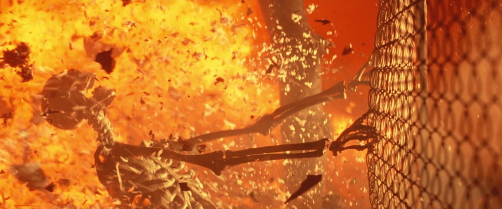 We’re shown the mundane daily activity of a crawl-and-go highway down in L.A (and oh God have I sat in that enough times in my life). Children play at a park and people wait at crosswalks. It’s so average. That’s what makes it so haunting and permanent in our subconscious. Cameron shows us ourselves, caught in traffic, going to work or going shopping, or home. Of children’s innocence and parents’ naivety. No one was on edge and no one expected the nukes to fall. We are then immediately shown the ‘current’ world, a post Judgement Day planet.