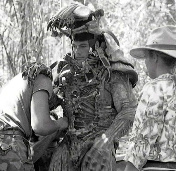 However, it’s well-known by now that action star Jon Claude Van Dam was slated to play the part of the Predator. Some set pics are around showing off what he would have looked like too and… the original look had more in common with a big lobster bug than the monster we know today.