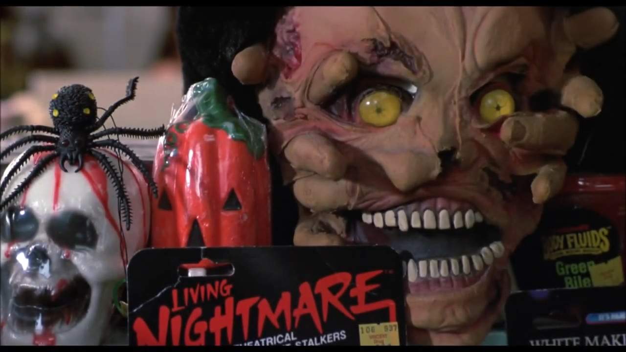Aside from the opener, Vincent’s Drug store scene is my absolute favorite part of this movie. My Goddess, it’s like a wave of childhood memories drowning me in my own nostalgic mojo goo. Aside from all that, it’s a fairly crucial scene as this is where Michael picks up his mask for the movie. Dwight H. Little did an excellent job here much like with the rest of the film, capturing the ambiance of a 1980s Mom and Pop shop during the Halloween holiday season. I’ve studied this scene dozens of times. it’s a fun little activity if you’re bored, and there is a TREASURE TROVE of Halloween memories found within Vincent’s Drug. Apart from the cool wall of masks, I’m sure most fans of the film have seen what I’m talking about it here, but in case you need a refresher…