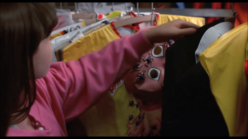 The scenes’ in Jamie’s school are both frustrating and beautifully nostalgic. While you want to punch the shit out of these kids for saying these awful things to this poor kid, the scenic atmosphere that rings all the nostalgic bells in my Spidey Senses goes off at a flashgun rate. From the noisy plastic costumes with the Ben Cooper masks to the die-cut Halloween dĆ©cor plastering the halls of the school, it makes for one HELL of a nostalgia-fest; including the bullying aspect. We’ve all been there- hopefully not to this extent, but we all know kids can be ruthless bastards.