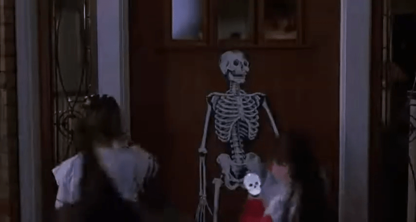 Aside from Halloween III, the Halloween films don’t really focus on this all-important aspect of the holiday. In H4 however, we got a whole part of the movie dedicated to it as a set-up for the looming evil that is following Jamie and Rachel. Something about the gloomy blue and black hues scored with a bunch of kids running around in their garbage bag costumes just gets me feeling fuzzy about the whole thing. Also, the Halloween decorations (again) give into that nostalgic feeling of happiness. Numerous jointed skeletons are found in this movie. And I can’t seem to get enough of them.