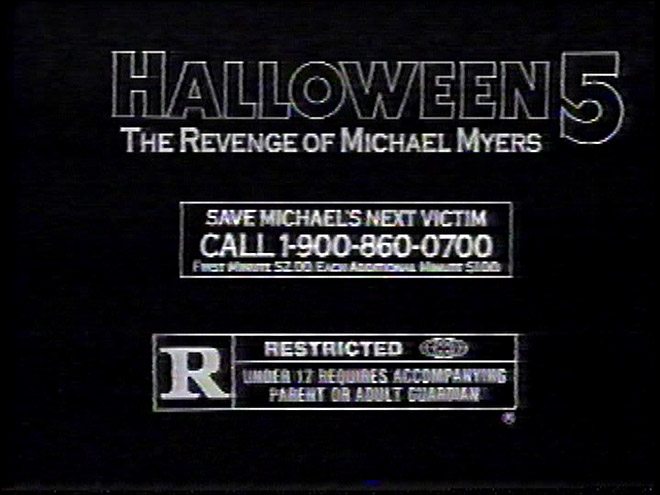 I’ve written about this little 900 treasure before, but it deserves another shout-out as it’s the only official horror hotline granted access to our ears. The shameless promotion for one of the weaker installments of the Halloween franchise also included a hotline that appeared at the end of television promos for the fifth film in the series. If you called said number, you could guide a potential victim of Michael’s to safety and feel like a damn horror hero. I absolutely remember seeing a ton of marketing for this particular Myers sequel and did drag my parents to the theater for a viewing. Being eight years old at the time, I loved the movie back then, but of course, as my taste matured some, I realized it doesn’t quite stand up to the rest of the series. The movie’s box office earnings barely covered the production costs of the film, but I’m sure some saps bought into the hotline and don’t regret a second of it.