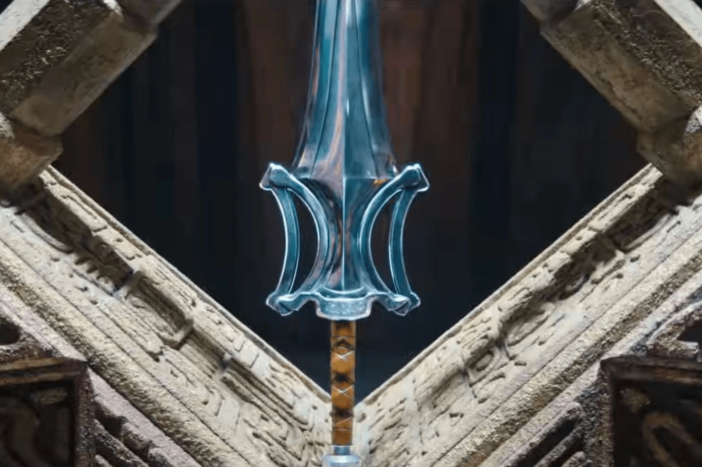Also from the trailer, we see that Adam is very aware of his birthplace in Eternia and is searching for a way to get back home as heโs also seeking the Power Sword. He somehow knows that the sword is the key to his homecoming. In keeping with the playful nature of the Filmation show, we see Adamโs finally discovered the location of the Power Sword, and itโs in a comic shop. Of course it is. Itโs secured in the hands of a life-sized barbarian guy, and eagle-eyed fans will note that this barbarian statue just so happens to be the concept design of He-Man way back when they were pitching the idea around. Itโs little stuff like that that gives me hope for this project. It shows the minds behind the project did some research.
