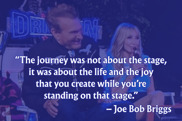 Whether it was each week, each month, or each special, our giddiness never waned. We woke excited on Joe Bob Fridays, stocked up on snacks and libations after work in preparation, and shared that excitement on social media as we watched the “Joe Bob Begins” countdown tick toward blood, breasts, and beasts. And we have bookended server glitches to prove it.