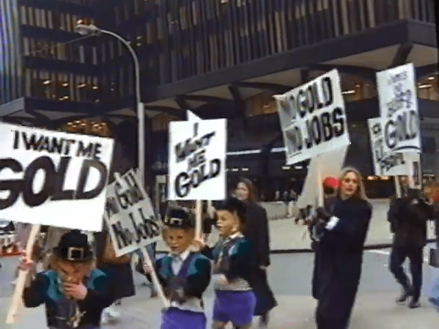 The promo also features nationwide publicity stunts that including a couple of smaller fellows dressing up as the Leprechaun character marching in protest at the New York Stock Exchange.