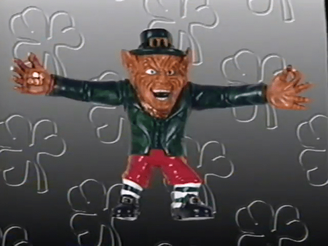 The promo’s narrating salesman was a bit off in his 12-15 million gross box office projection of the 1993 cult classic when the film actually only took home over 8 million, but that’s still a pretty respectable number for a low-budget horror film about a homicidal leprechaun!