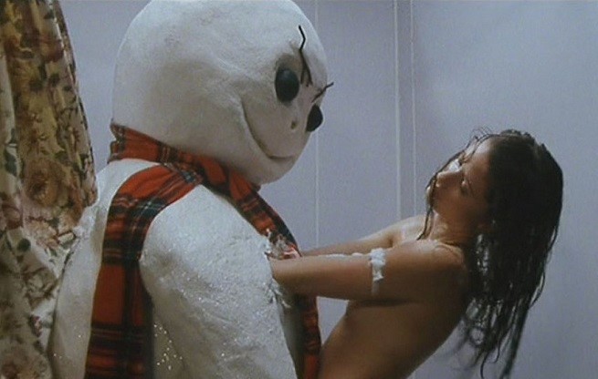 In said scene, an inconspicuous carrot appears in the tub with Liz, followed by a mound of snow forming into that of Jack Frost. He grabs Liz, slams her around a bit while forcefully banging (ahem) her against the bathroom wall, ultimately dropping her naked body on the cold tile for her to die out. That is forever some wild shit to put on screen.