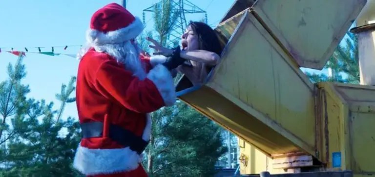 The Coen Brothers’ FARGO doesn’t hold a candle to this death-by-wood-chipper scene where our manic Santa feeds a porn star into the hungry machine legs first. I mean, porn stars are supposed to give woodys right? Maybe they were just taking it very literally here. I’m just full of bad Dad jokes today.