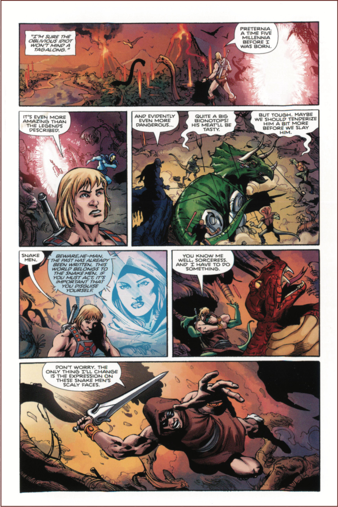 So the battle to save the future starts in the past as He-Man heeds the words of the Sorceress and enters a world of dinosaurs and snake demons. But hot on his heels is Skeletor who secretly follows close behind and enters Preternia with plans of his own.