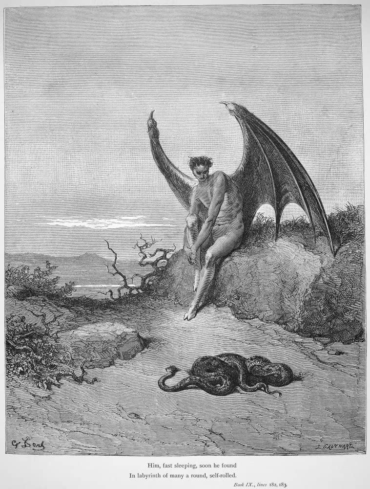 But I get it, people think snakes are scary so it works. It also hits us on a spiritual level, or to employ an archetypal reference of evil just imagine Lucifer lurking in Paradise to bring about the ruination of mankind all the while being in the guise of a serpent. It’s classic and readily recognizable. John Milton’s epic Paradise Lost can’t help but come to mind here.