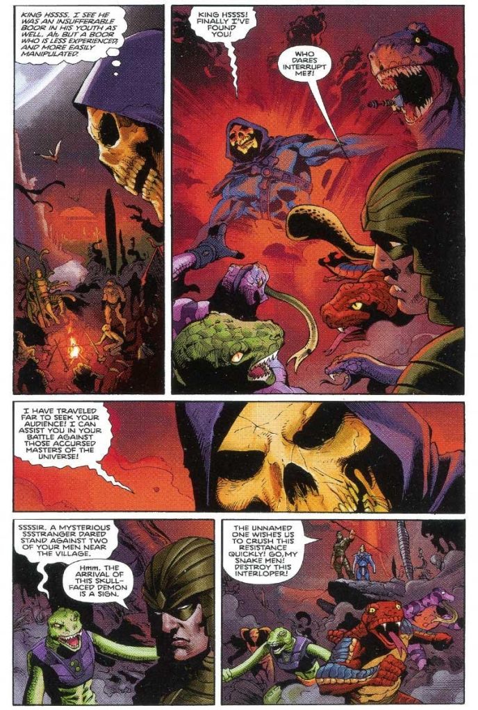 Ever the cunning one, Skeletor plots to undo his old master and stomp his boot happily into the face of King Hiss. After all, King Hiss has, at this point, driven Skeletor from his throne at Snake Mountain and claimed ownership back from him. We’re not told how that happened in the comics but it was explored in the 200X cartoon. So Skeletor is on a personal mission for revenge.