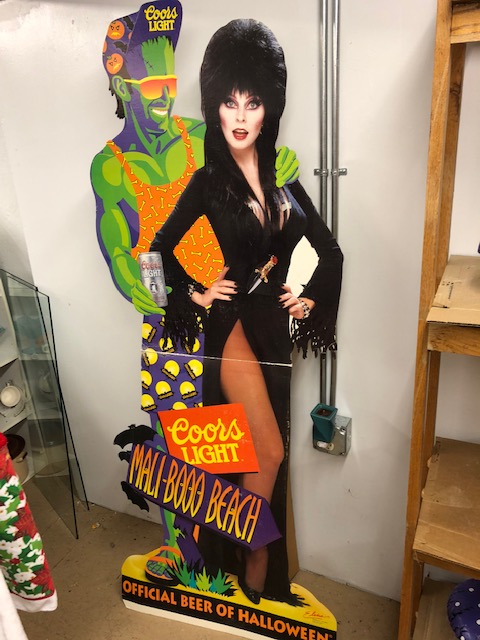 Cards turned into a six-foot, Coors Light cardboard Halloween stander I found at a thrift store (which still stands in the lobby of she and her husband’s business), and this past year, I added a Twin Peaks tee to the fray.