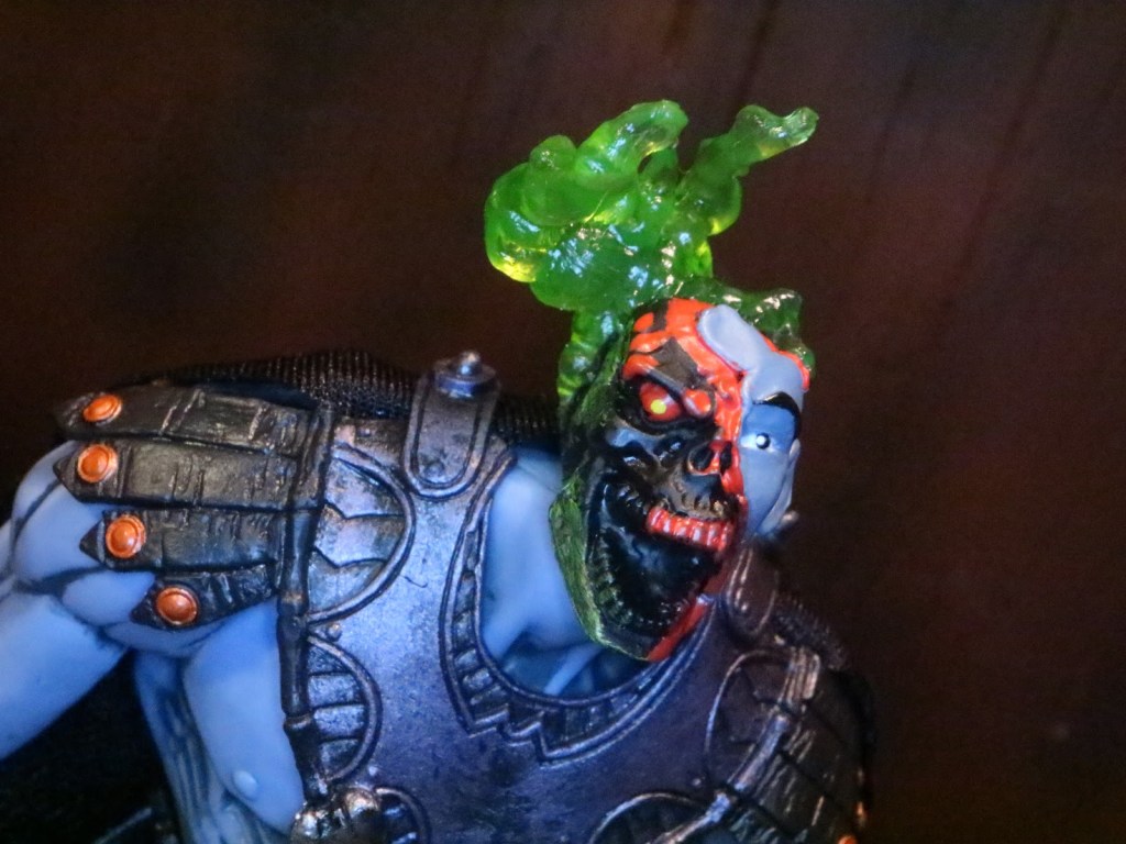 But the acid did not turn him into Skeletor. Well in a roundabout way, it leads to that. But many, myself included at first, just kinda assumed the acid melted the flesh away, and ta-da! Instant Skeletor! The fact was though he was dying from it. And really is it any surprise? Who could survive acid to the face for fuck’s sake?