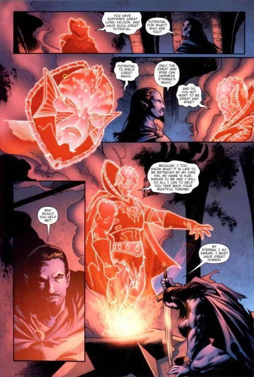 I just love that. The villain is brought full circle with his destiny. As the demon combined with Keldor new life and energy flowed into his weakened body.