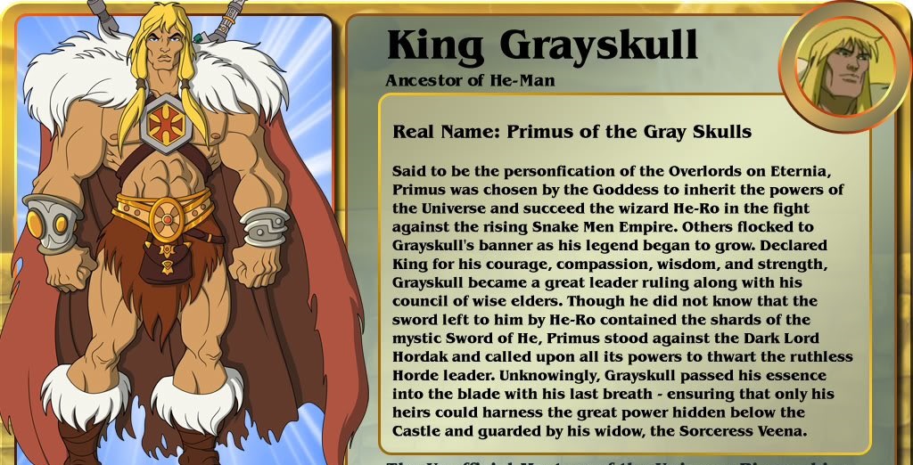 During the battle, the Masters suffer a terrible loss as He-Ro, the mightiest wizard of the universe, sacrifices himself to save King Grayskull. With his dying breath, Ro passes on the Sword of He to the king thus beginning a legacy of mighty warriors and valiant protectors who ensure the safekeeping of the universe and all its many secrets.