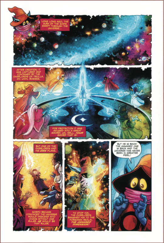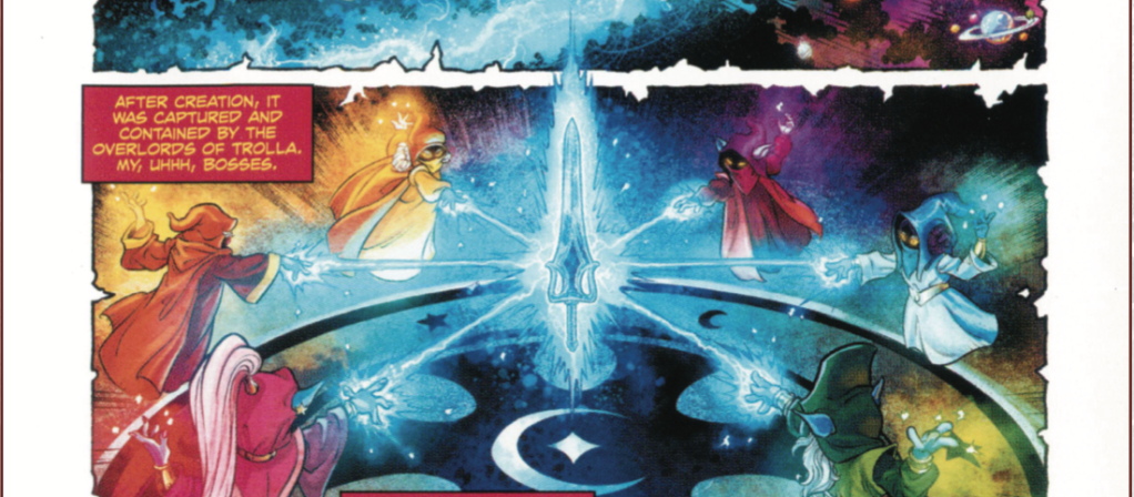 Some may find that annoying, perhaps even a tad bit sloppy. I like to remind those critics that this is a story slapped alongside an action figure. It’s not meant to be Tolkien here, but given the enormous amount of value the writers and artists poured into these limited tiny pages is nothing short of astounding. This is cinematic greatness told very fast and it flashes across the pages rapidly. It feels like we’re given snippets of important moments from Eternian history. Frames of a major ongoing battle where we’re left to tend to and fill in the blanks with our own imaginations. The most important moments are not lost to us though. I keep talking about video game material and by God here it is right here in plain sight. On that note a video game adaptation of TMNT The Last Ronin has been announced soooo here’s hoping MOTU gets some attention too. Could you imagine hopping across Eternia and Preternia in order to save the universe? Ok, I’ll stop.