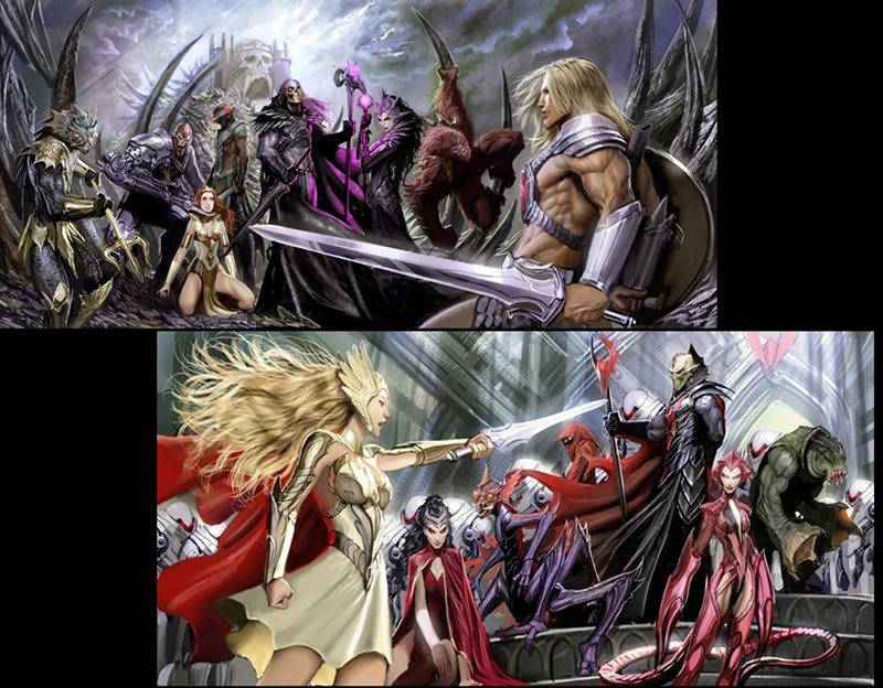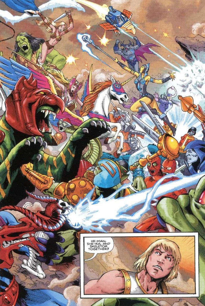 He-Man and She-Ra, the legendary twins, are back together as She-Ra races down upon Swiftwind, her formidable steed, with all her warriors in tow to meet Hordak one final time. Skeletor, the Lord of Destruction, now stands with He-Man and seeks to wrest back the Havoc Staff from the accursed King Hiss. He-Man, the most powerful man in the universe, charges out astride Battlecat and cries loud, “For Eternia!” Answering the call his sister shouts, “For Etheria!” Both of their armies raise arms and rush into battle behind them covering the land and filling the skies. “Yes!” Skeletor’s voice rises above the din of unsheathing blades. “Yes, what the simpleton siblings said!”