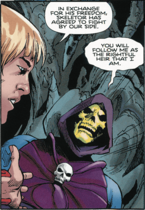 He’s won and not by show of force but out of desperation. The Masters don’t doubt Skeletor’s authority and would rather have the Lord of Destructoin on their side than working against them.