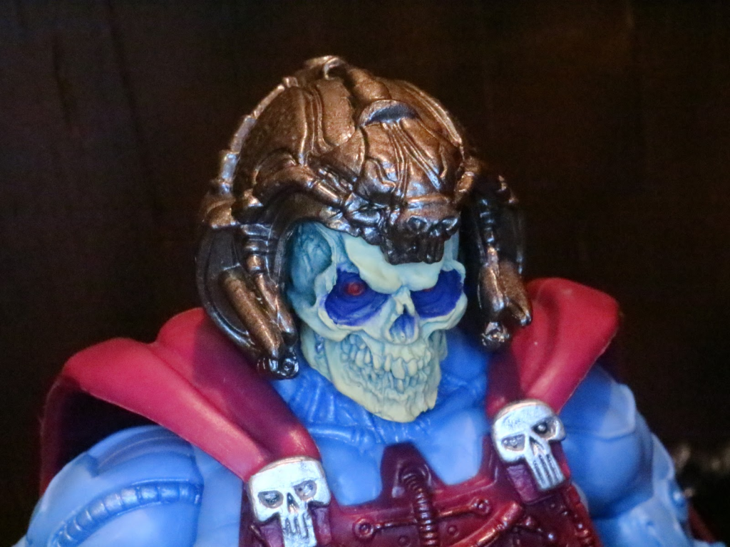 I keep finding little details like that to awe over. I love that a metal vertebra is decorated on the back of Skeletor’s chest guard or how skulls adorn each of his leather straps.