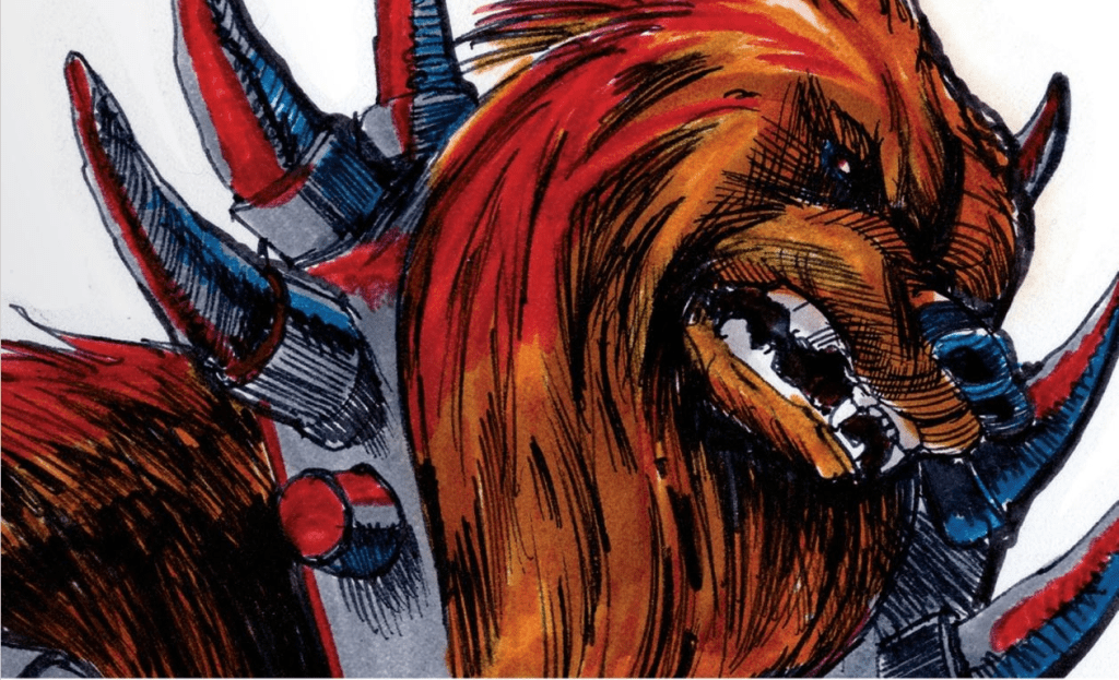 In his hasty escape, He-Ro found himself on a primitive planet of barbarians where giant beasts roamed the tangled jungles. Eldor, a kind sage, rescued He-Ro and helped him cure himself of the techno-bionic virus by washing in a sacred pool. This event though was not without consequence. From it the virus spread across the planet and infected both the vegetation and the mighty beasts who ate it, turning them into bio-mechanic creatures themselves. That’s how something like Bionatops was roaming around the wilderness.