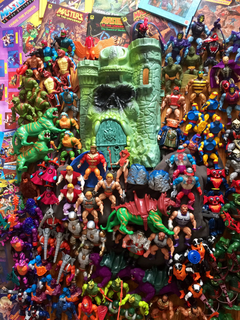Imagine having all your toys all spread out across an imaginative battlefield (the living room carpet or outside in a sandbox) like this. A high-stakes congestion of might, science, and sorcery all met together for a massive final conflict. This is the kind of stuff I was doing when friends and I got together to play. The playroom exploded with adventure and might.