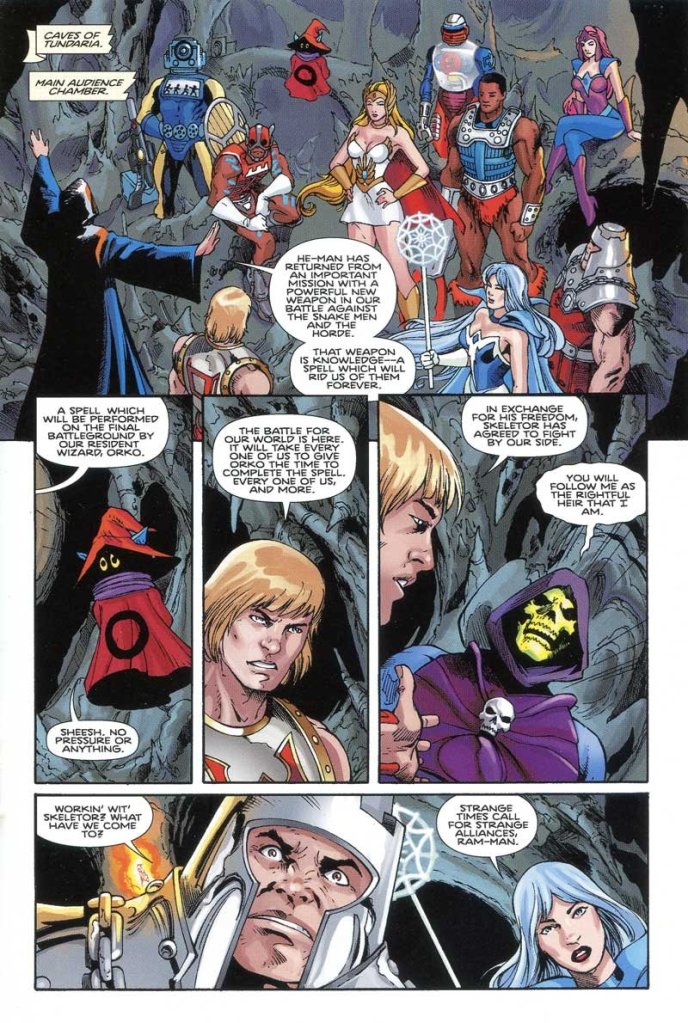 And, just as before, heroes of the past are resurrected to aid the Masters in their plight. The Unnamed one further demonstrates how metal of a motherfucker he is by resurrecting Skeletor, King Hiss, and Hordak to assist his diabolic cause. Just for good measure he even frees Horde Prime and enlists his might. Yeah, you read that right. Horde Prime, the biggest and baddest of the lot serves under the Unnamed One. We now see who wears the pants around here.