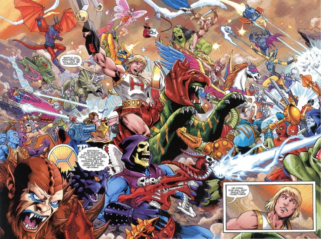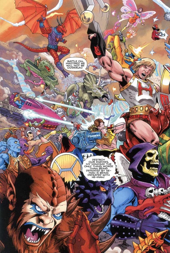 The time of the ultimate battleground is at hand. The two-page spread is nothing short of breathtaking. Characters from all across MOTU history are here at long last. No one is too obscure and even the live-action movie is represented here. It’s as if this one battle is definitive to the whole of the shared MOTU universe. Eternia and Etheria have loosed their might to destroy the villainous forces threatening the whole universe. Keep in mind that this was also way before Avengers: End Game was even a Disney producer’s wet dream. This was the original (epic) crossover event of our childhoods.