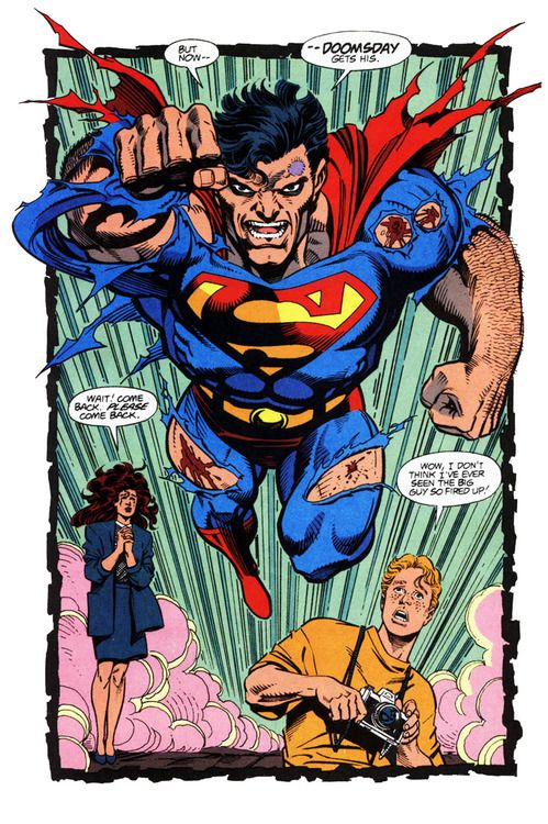 The fight between Superman and Doomsday was full-page page-turners of little dialogue spoken and just a slugfest of two calamity forces, one of good and the other of destruction, fighting to the death.