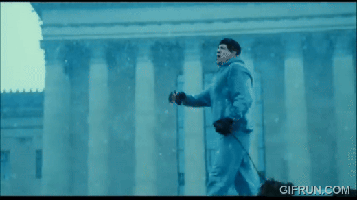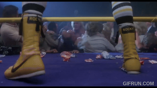 In regards to the final fight, the immanent theme of change begins as our American hero is booed all the way to the ring. The entrance is dark, dank, and smells of uncertainty. Whereas Drago’s entrance tells the same tale only with favorable crowd and a WAY more sinister feeling- we will definitely attribute Dicola’s Drago Suite to the anxiety in the room as we prepare for war. As the fight progresses and the pair of soldiers are beating the ever-loving shit out of each other, the change begins. As Rocky our series underdog keeps taking the licks and getting back up, the communist crowd begins to favor the Italian Stallion and his perseverance.