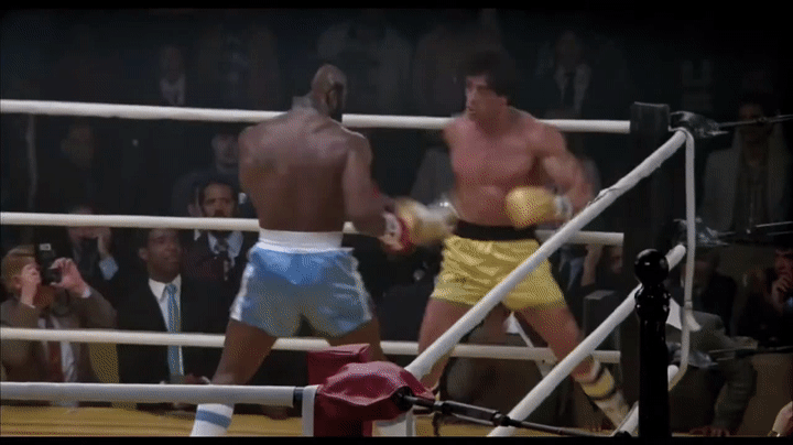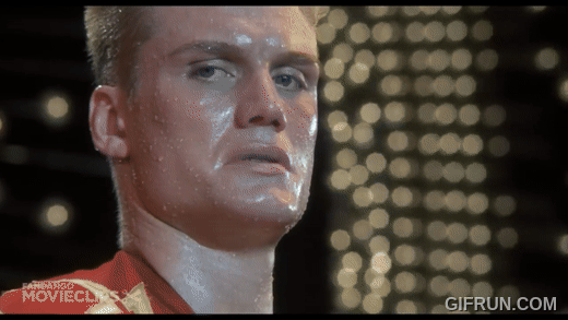 As the fight progresses and the pair of soldiers are beating the ever-loving shit out of each other, the change begins. As Rocky, our series underdog, keeps taking the licks and getting back up, the communist crowd begins to favor the Italian Stallion and his perseverance. This of course, doesn’t sit well with the Russian officials overseeing the fight, and one of Drago’s main drug-dealers, erm, I mean overseers runs down to the ring to give him a good what-for. Drago ain’t having this shit and basically tells him to fuck off while throwing his little ass to the ground. Throughout the film, Drago is seen sort of like an object. A Russian robot slave with no authority over himself. This is the turning of the tides in the film where he is no longer fighting for anyone but himself. However, too little too late as Rocky has the upper hand with his unforgettable determination and gives him a good knock to the jaw, putting him out for good.
