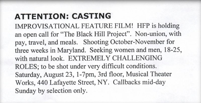 Made with a budget of only $60,000, the film premiered at Sundance in 1999. Just hours after the midnight screening, the two young directors sold the film to Artisan Entertainment for $1.1 million. However, the “project” itself was actually years in the making. Sanchez and Myrick first came up for the concept as film students in 1991, and it wasn’t until 1996 that they had the means to actually begin realizing their vision. A call was sent out to find actors who not only fit the roles but could also be quick to improvise, as most of the dialogue was to be that way.